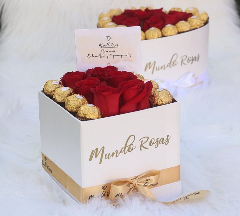 Selección de los mejores bombones Ferrero Rocher, acompañado de nuestras hermosas rosas ecuatorianas