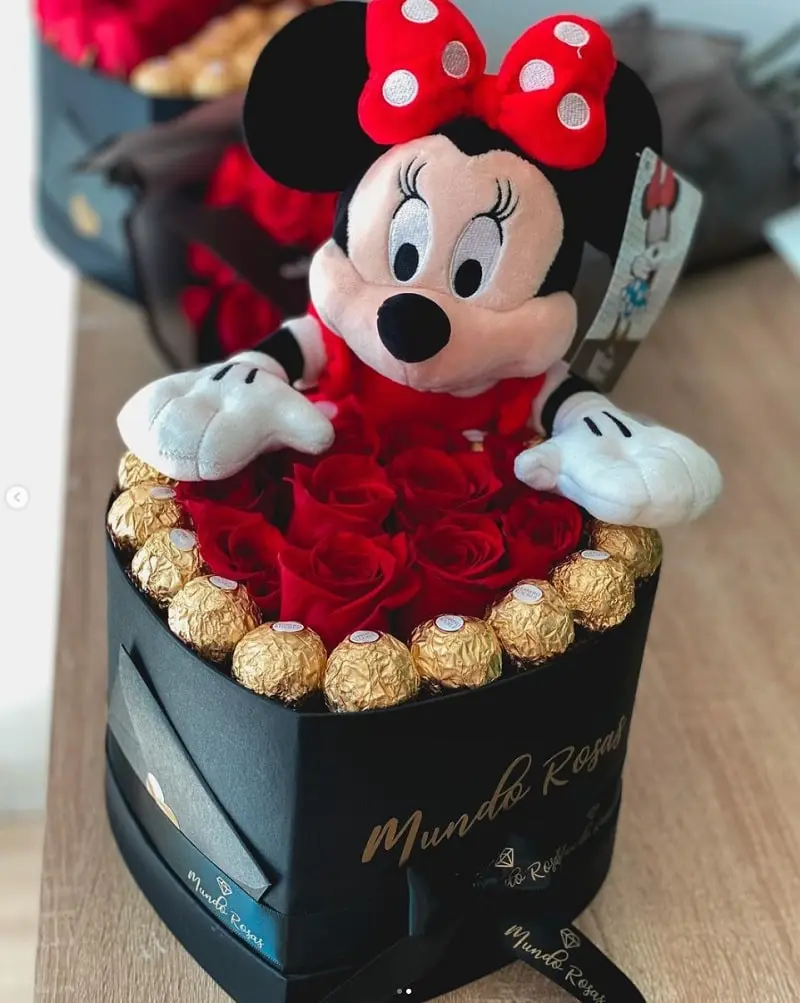 Selección de los mejores bombones Ferrero Rocher, acompañado de nuestras hermosas rosas ecuatorianas mas peluche Minnie Mouse 30 centímetros original