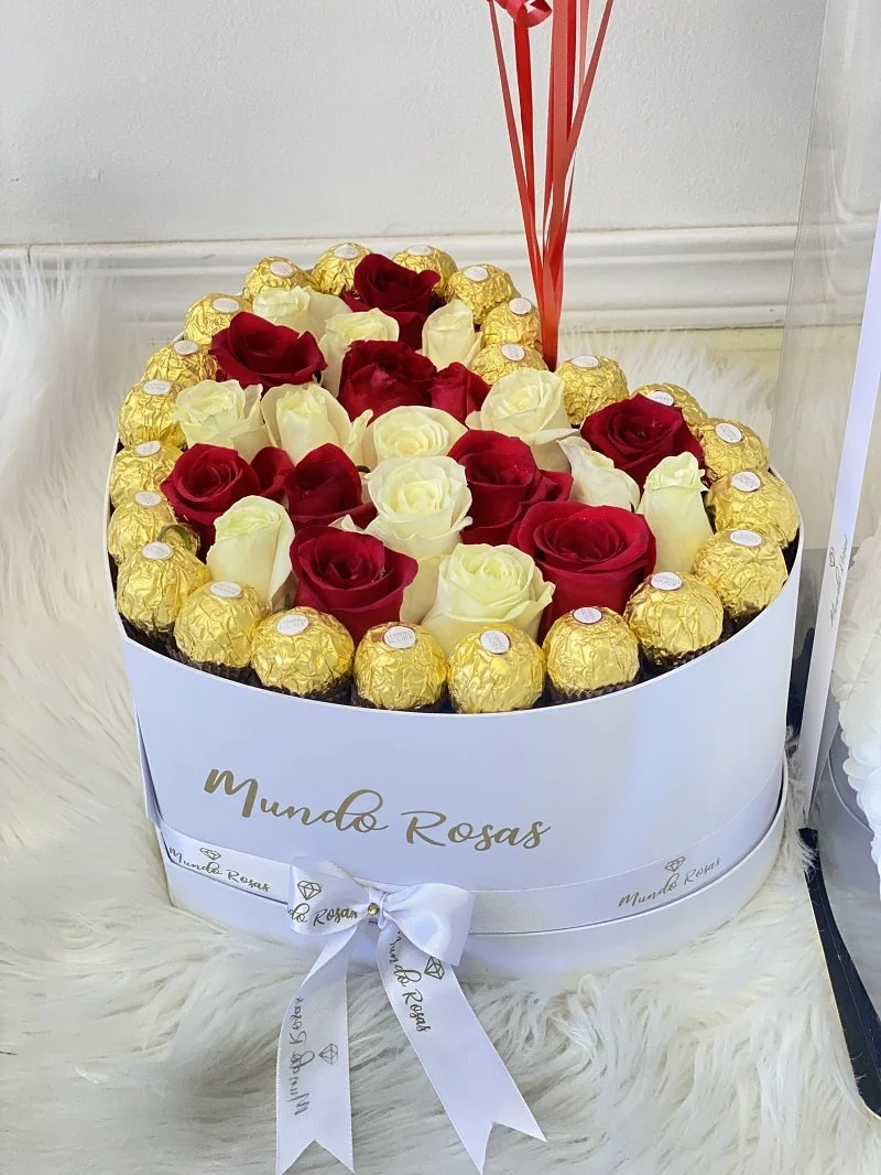 Selección de los mejores bombones Ferrero Rocher, acompañado de nuestras hermosas rosas ecuatorianas.