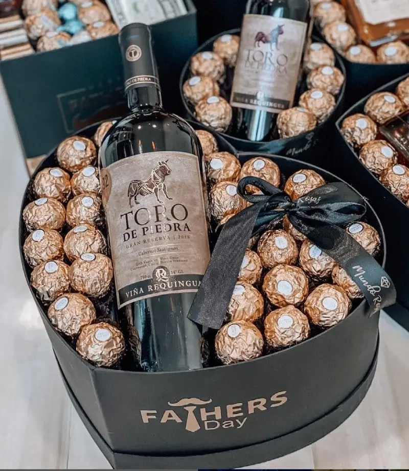 Caja Corazón con Selección de bombones Ferrero Rocher mas Vino Toro de piedra de 750cc.