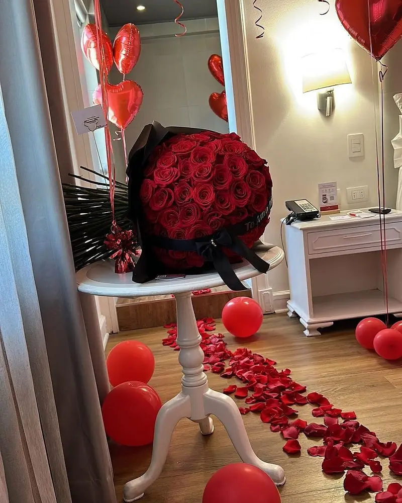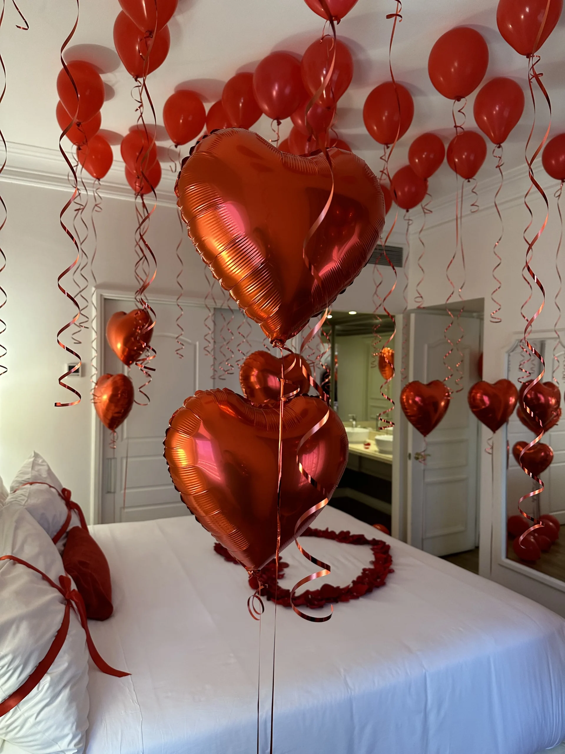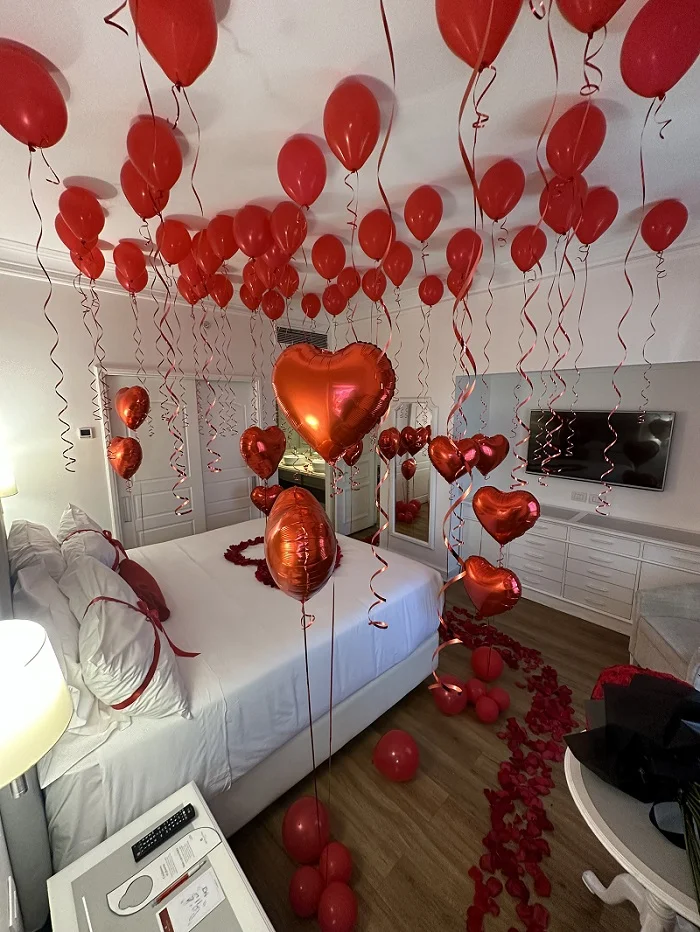 Deja todo en nuestras manos y sorprende con una delicada decoración de habitación Premium. El servicio incluye: