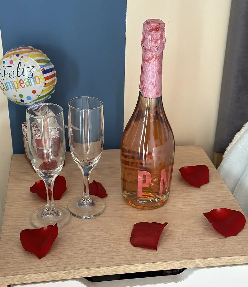 • 1 espumante Rose con 2 copas