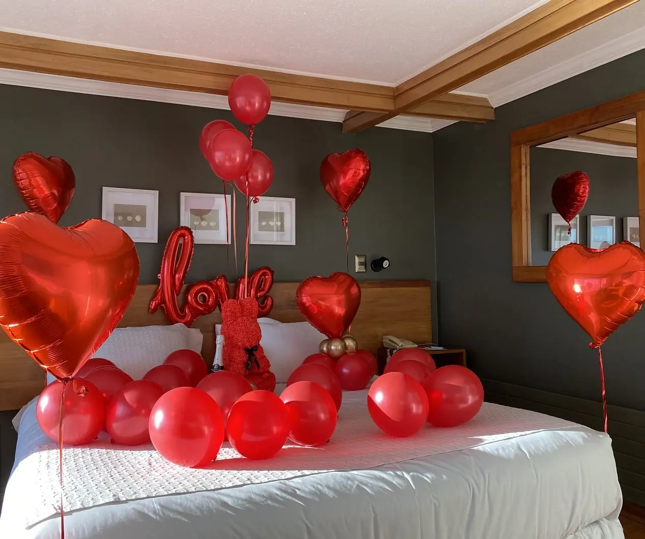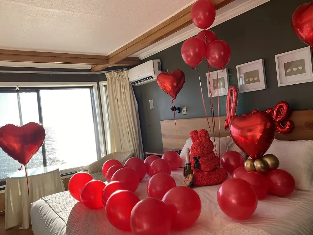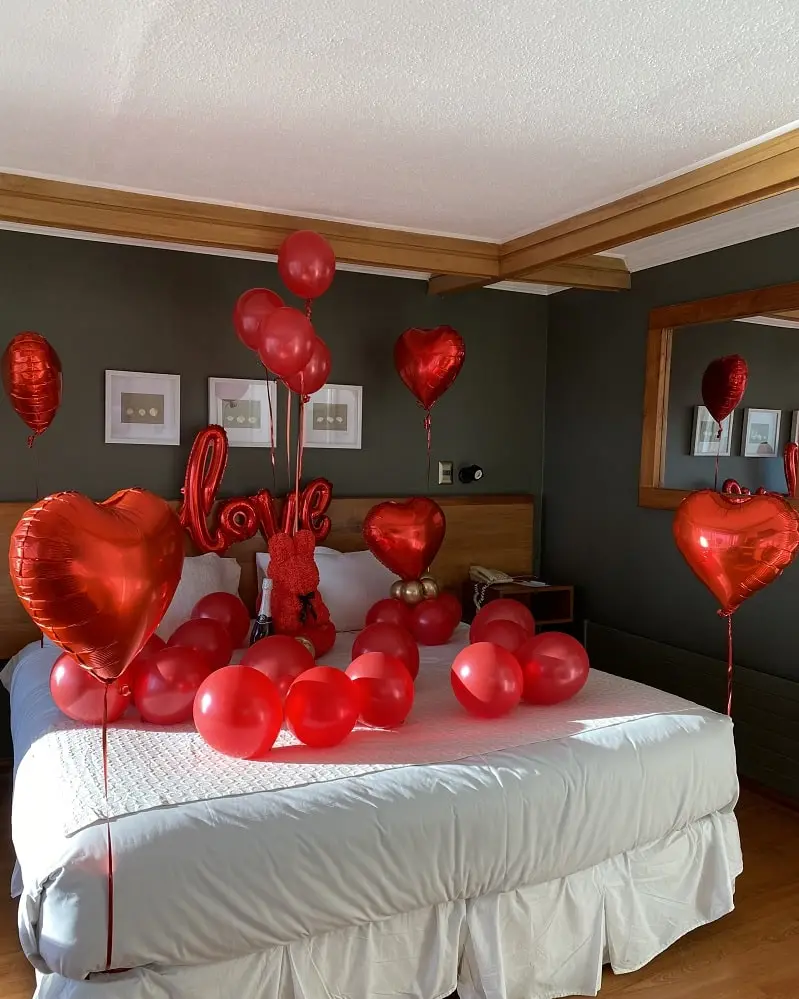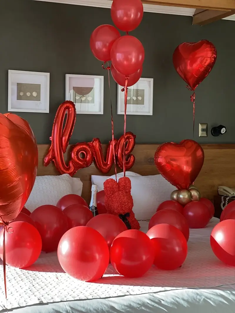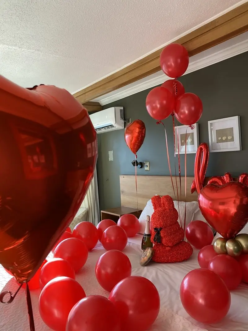 Deja todo en nuestras manos y sorprende con una delicada decoración de habitación. El servicio incluye: