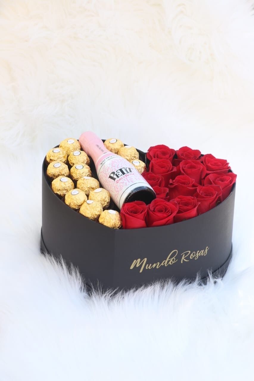 Selección de los mejores bombones Ferrero Rocher, acompañado de nuestras hermosas rosas ecuatorianas.