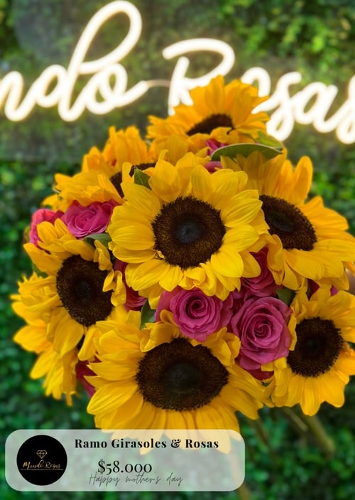 Ramo de rosas rosadas y girasoles